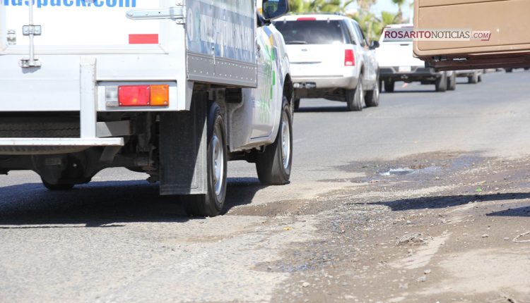 Desniveles y baches en bulevar principal de Rosarito