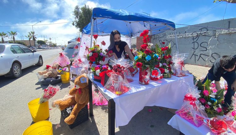Playas de Rosarito, 14 febrero 2022.- Bajas ventas en sus productos han registrado algunos comerciantes que han invertido en arreglos florales, osos de peluche, dulces y demás detalles para este 14 de febrero, día de los enamorados.