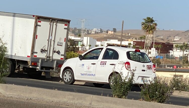 Playas de Rosarito, 4 de mayo de 2022.- A raíz de denuncias ciudadanas, Sindicatura Municipal ya investiga el actuar de los elementos de transportes municipales que fueron sorprendidos deteniendo y remolcando un vehículo de carga sobre la carretera libre Rosarito-Tijuana dentro de 2 kilómetros dentro del municipio vecino.