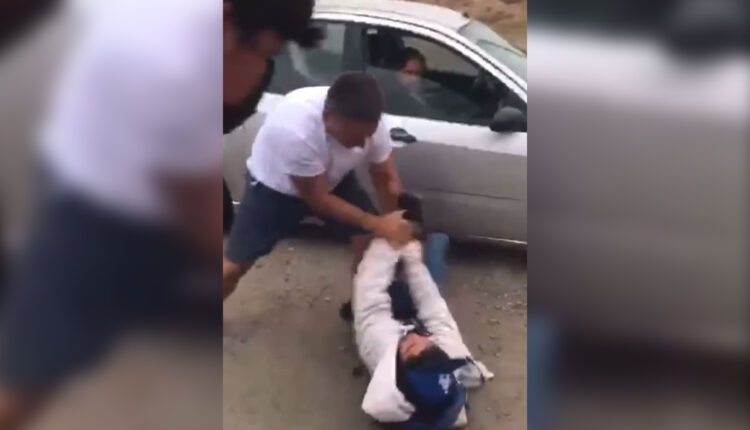En el video, se muestra a un padre de familia empujando a uno de los menores mientras otros observan, graban el hecho e intercambian palabras con el padre, el cual, tras algunos segundos se marcha en su vehículo.