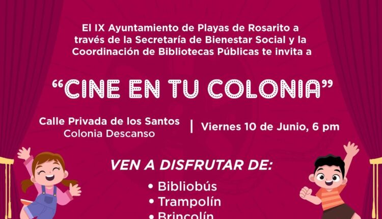 Playas de Rosarito, 7 de junio de 2022.- El IX Ayuntamiento de Playas de Rosarito invita a la comunidad a disfrutar del programa “Cine en tu Colonia” el próximo viernes 10 de junio en la comunidad de El descanso.