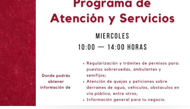 Entre las actividades, los asistentes podrán obtener información para realizar diversos trámites, como son: Regularización y trámites de permisos para: Puestos sobre ruedas, ambulantes y semifijos, Atención de quejas y peticiones sobre derrames de agua, vehículos, obstáculos en vía pública, entre otros; e información general para sus negocios.
