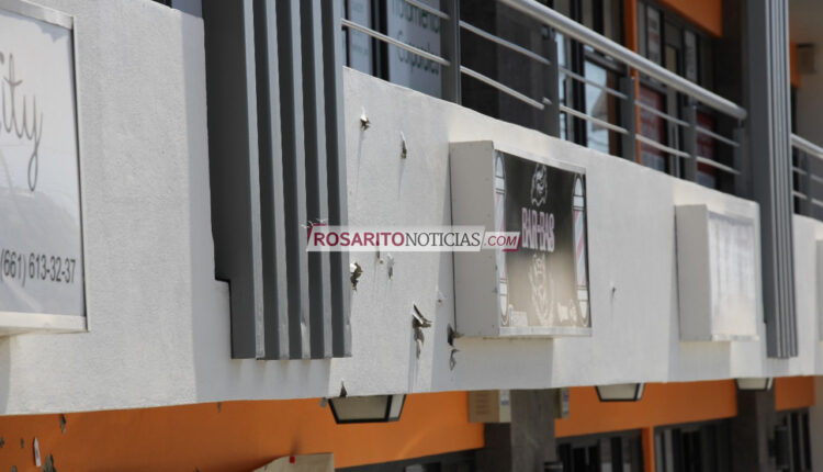 Playas de Rosarito, 04 de julio de 2022.- Dos días después del ataque armado en contra de un líder criminal, los daños continúan siendo visibles en la plaza comercial ubicada en la colonia Reforma, lugar donde se pueden apreciar vidrios rotos, pared con incontable cantidad de impactos y daños en los interiores de los negocios.