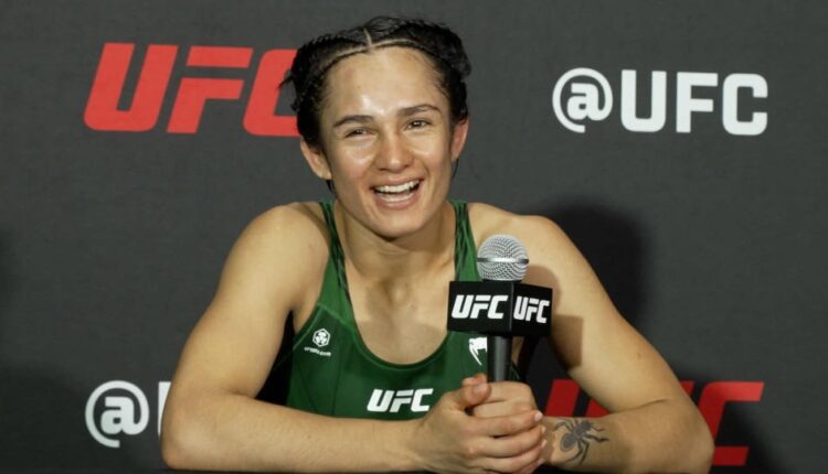 Playas de Rosarito, 15 de agosto 2022.- La originaria de Primo Tapia al sur de Rosarito, Jazmín Jauregui se llevó la victoria tras derrotar a IIasmin Lucindo en su debut como peleadora de la Ultimate Fighting Championship (UFC), pelea que se llevó a cabo este fin de semana.