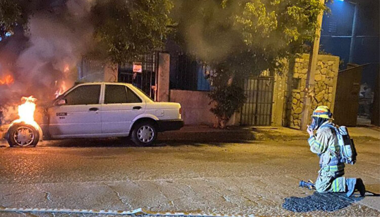 Al llegar cuerpos de bomberos, visualizaron un vehículo blanco estacionado en llamas con logotipos de la fiscalía general del estado.