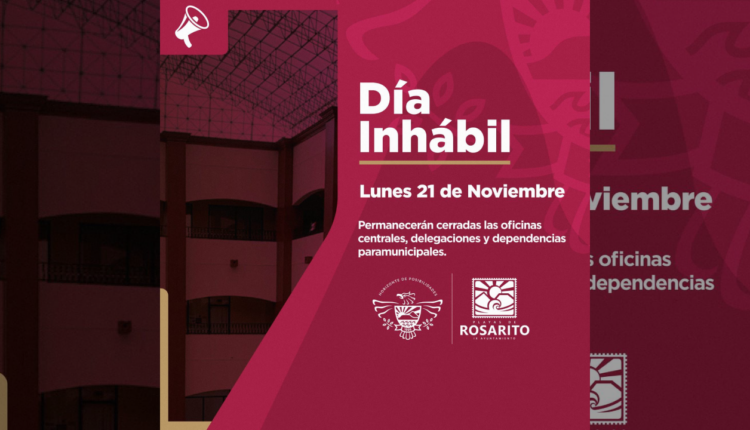 Playas de Rosarito, 19 de noviembre del 2022.-Este lunes, 21 de noviembre será día inhábil para el Gobierno Municipal, por lo que permanecerán cerradas las oficinas del gobierno central, delegaciones y paramunicipales.