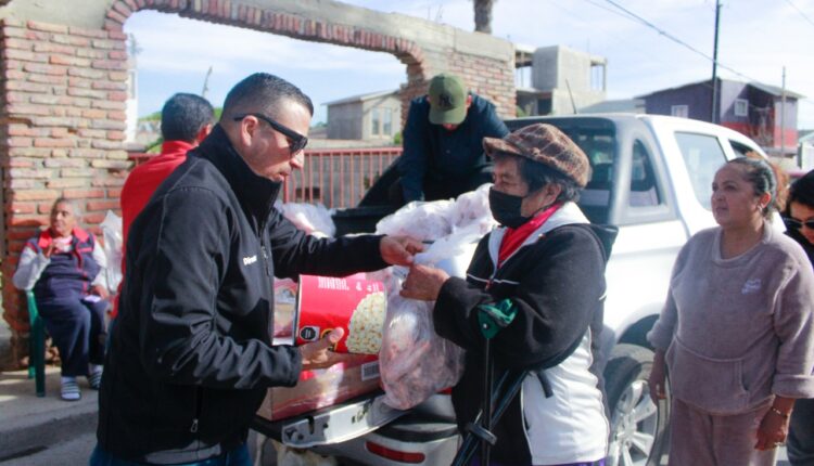 Playas de Rosarito, 23 de diciembre de 2022.- Con el objetivo de contribuir al bienestar social en estas fechas de celebraciones y para apoyar la economía de adultos mayores y familias en condición de vulnerabilidad, autoridades municipales, encabezadas por Araceli Brown Figueredo, hicieron entrega de 9 mil Cenas Navideñas a residentes del Quinto Municipio.