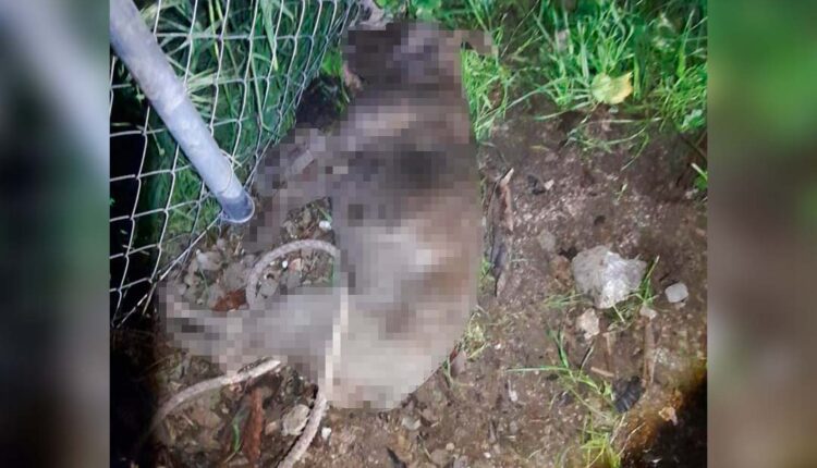 Al llegar al lugar, los agentes encontraron al sujeto jalando una cuerda sobre la maya ciclónica y un perro colgado (de color gris), por lo que al percatarse de la presencia de los agentes, soltó la cuerda, a un costado estaba otro can inmóvil.