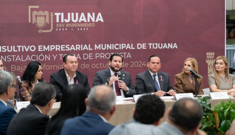 Tijuana, Baja California, a 17 de octubre de 2024.- A fin de impulsar el desarrollo de la ciudad y privilegiar el bienestar de las y los tijuanenses, el Presidente Municipal, Ismael Burgueño Ruiz, encabezó la instalación y toma de protesta del Consejo Consultivo Empresarial, en cumplimiento a uno de sus compromisos asumidos durante su campaña por la Alcaldía.