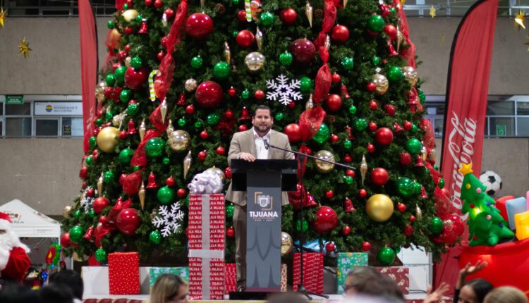 Tijuana, Baja California, a 10 de diciembre de 2024.- Como parte de las actividades navideñas organizadas por el XXV Ayuntamiento de Tijuana, encabezado por el Alcalde Ismael Burgueño Ruiz, este martes se llevó a cabo el tradicional encendido del árbol de Navidad en el patio central de Palacio Municipal, la casa de las y los tijuanenses.