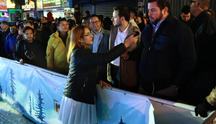 Tijuana, Baja California, a 15 de diciembre de 2024.- El Presidente Municipal de Tijuana, Ismael Burgueño Ruiz, realizó un recorrido por la Villa Navideña, en el corazón de Tijuana, la Avenida Revolución, donde constató que un gran número de familias disfrutan de los atractivos que ofrece este espacio como la pista de hielo.