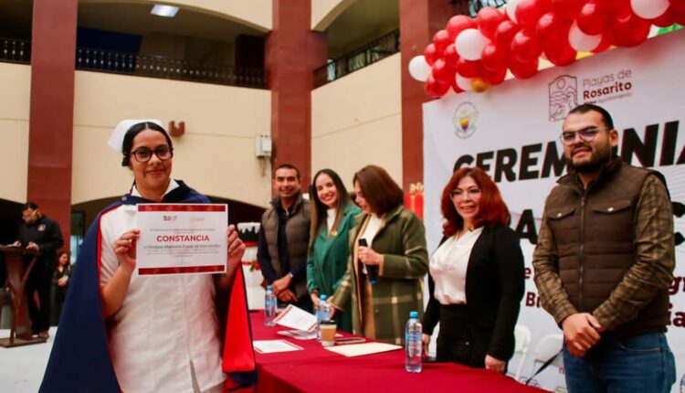 Playas de Rosarito, B.C., 27 de diciembre de 2024.- En un emotivo evento, el 10mo. Ayuntamiento de Playas de Rosarito, encabezado por la presidenta Rocio Adame Muñoz, llevó a cabo la graduación de 100 rosaritenses que culminaron con éxito los diversos talleres impartidos en los Centros Integradores del Bienestar Social del DIF Rosarito.