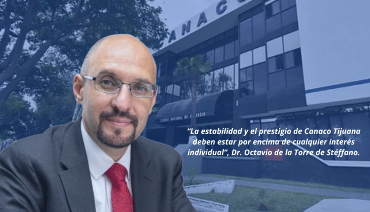 Tijuana, 16 de febrero de 2025.- Ante la creciente disputa por la presidencia de la Cámara Nacional de Comercio, Servicios y Turismo (Canaco Servytur) de Tijuana, el Dr. Octavio de la Torre de Stéffano, presidente de la Confederación de Cámaras Nacionales de Comercio, Servicios y Turismo (Concanaco Servytur), hizo un llamado a la transparencia y unidad en el proceso electoral que se llevará a cabo este lunes 17 de febrero.