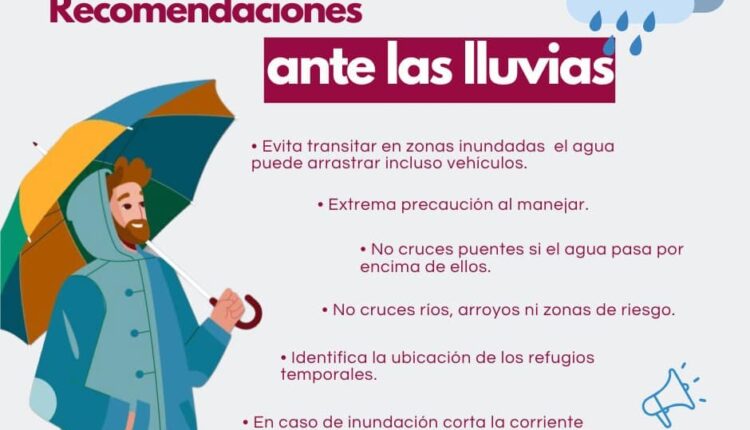Se pide evitar zonas inundables, laderas inestables y construcciones endebles, así como seguir las indicaciones de la autoridad a través de sus redes sociales y medios de comunicación.