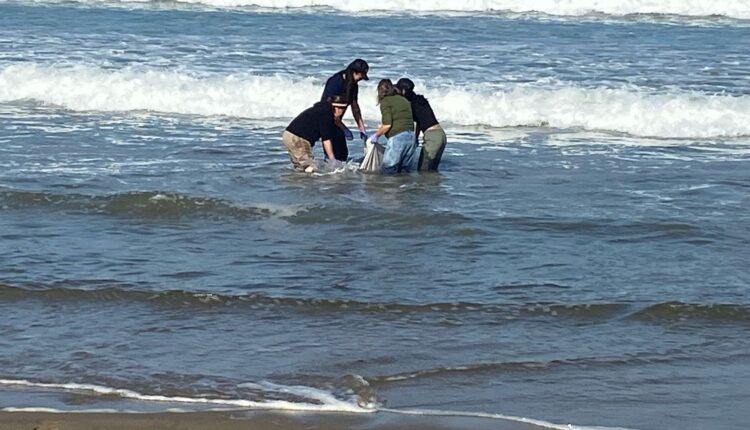 Ensenada, B.C., 27 de marzo de 2025.- Un delfín quedó varado en Playa Conalep, lo que activó un operativo de rescate por parte de autoridades ambientales. Expertos de Zofemat, Profepa e ICMME trabajaron para trasladarlo a un punto seguro en Playa Hermosa y reintegrarlo a su hábitat.