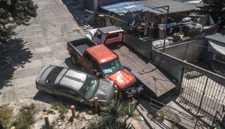 Tijuana, B.C, 22 de abril de 2025.— Una tragedia estuvo a punto de ocurrir este lunes en la colonia El Pípila, donde una grúa sin frenos descendió a toda velocidad por una calle empinada y chocó contra dos vehículos estacionados, justo en el momento en que un hombre realizaba trabajos mecánicos.