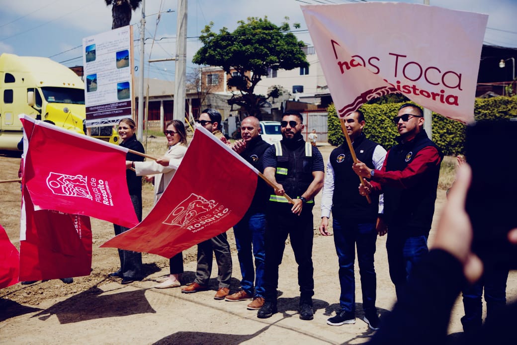 Playas de Rosarito, B.C., 7 de mayo de 2025.- El gobierno encabezado por la presidenta municipal, Mtra. Rocio Adame Muñoz, dio hoy el banderazo de inicio de los trabajos de pavimentación a cuatro importantes vialidades de la delegación Primo Tapia, que beneficiarán a 3 mil personas, con una inversión cercana a los 18 millones de pesos.