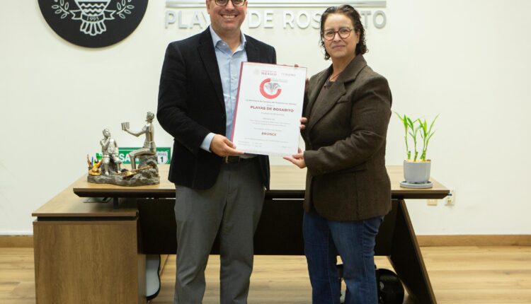 Playas de Rosarito, B.C., 16 de mayo de 2025.– En un logro que reafirma el compromiso del Gobierno Municipal con el desarrollo del turismo de calidad, Playas de Rosarito fue reconocido con el Distintivo Nacional de Calidad Turística en nivel bronce, una certificación que valida el esfuerzo continuo por ofrecer una mejor experiencia a quienes visitan nuestro municipio.
