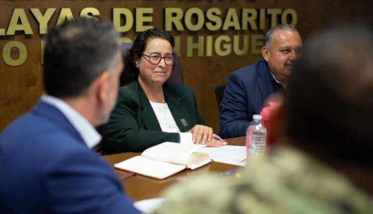 Playas de Rosarito, Baja California, a 23 de mayo de 2025.- Este viernes, la Presidenta Municipal del 10° Ayuntamiento de Playas de Rosarito, Mtra. Rocio Adame Muñoz, encabezó una nueva sesión de la Mesa de Seguridad, un espacio estratégico que se realiza semanalmente con la participación de los distintos órdenes de gobierno.