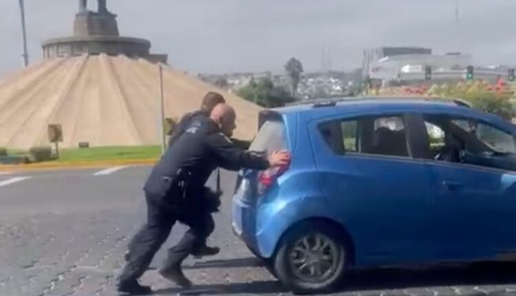 El conductor, identificado como Juan Gabriel, de 42 años y originario de la Ciudad de México, explicó que su automóvil, un Chevrolet Spark azul, se había apagado debido a una falla en la batería. Al tratarse de una unidad de transmisión estándar, solicitó apoyo para encenderlo empujándolo.