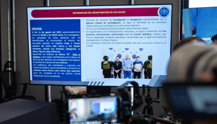 “Presentaban huellas de haber sido degollados; esta persona apodada ‘El Santero’, directamente participando con dos personas habían llegado de fuera del Estado, uno del Estado de México y de otros Estados, tenía poco tiempo aquí, tenían pocos meses y trataban de establecer su liderazgo criminal”, detalló la fiscal de Baja California, María Elena Andrade Ramírez.