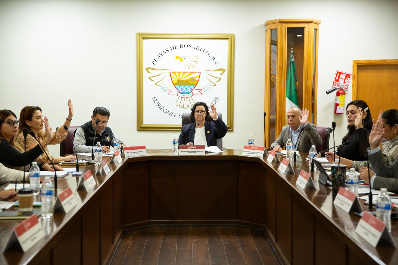 Playas de Rosarito, B.C., 9 de septiembre de 2025.— La presidenta municipal, Mtra. Rocío Adame Muñoz, encabezó la aprobación de acuerdos en sesión ordinaria de Cabildo destinados a mejorar el equipamiento, las unidades y las condiciones laborales del cuerpo de bomberos de Playas de Rosarito.