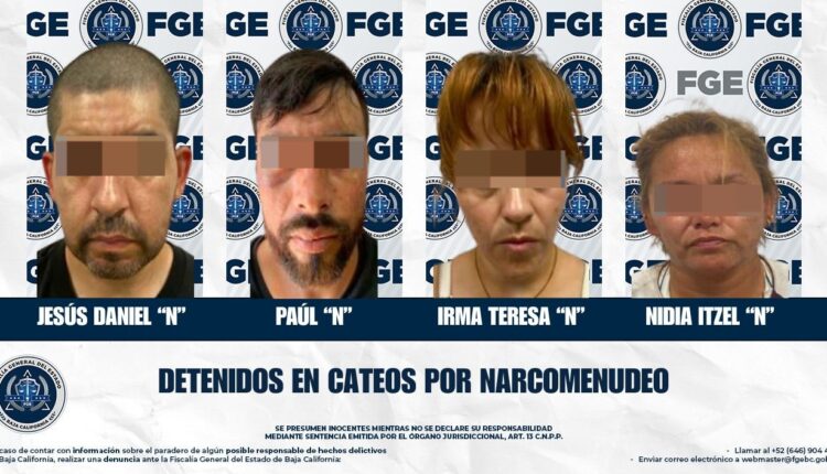 PLAYAS DE ROSARITO, BAJA CALIFORNIA, A 24 DE SEPTIEMBRE DE 2025.- Cuatro personas fueron detenidas por agentes de la Fiscalía General del Estado, tras la realización de tres cateos en los que se localizaron distintas cantidades de droga.