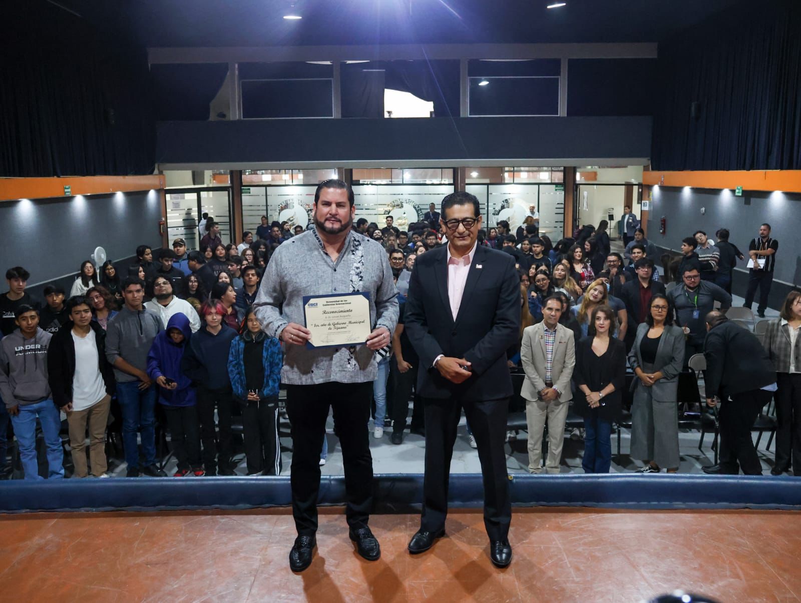 Tijuana, Baja California, a 24 de octubre de 2025. El presidente municipal, Ismael Burgueño Ruiz, visitó la Universidad de las Californias Internacional (UDCI), donde dialogó con estudiantes y directivos sobre los avances alcanzados en su administración, así como los programas impulsados para fortalecer la participación de la juventud en el desarrollo de la ciudad.