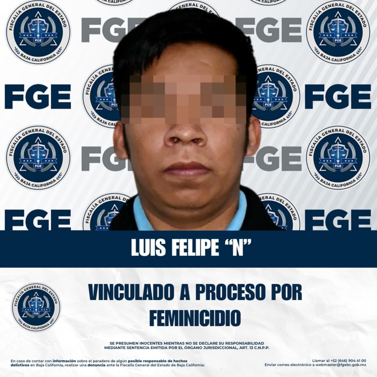 TIJUANA, BAJA CALIFORNIA, A 29 DE OCTUBRE DE 2025.- La Fiscalía General del Estado, encabezada por la Dra. Ma Elena Andrade Ramírez, a través de la Fiscalía Especializada en Delitos Contra la Vida, obtuvo la vinculación a proceso de Luis Felipe “N” por el delito de feminicidio, en agravio de Ashley Michelle “N”. Los hechos ocurrieron la noche del 6 de octubre al 7 de octubre de 2025, en el domicilio de la víctima, ubicado en la colonia Sánchez Taboada, en esta ciudad, donde el imputado agredió físicamente a su pareja sentimental, ejerciendo un mecanismo asfixiante sobre su cuello hasta privarla de la vida por asfixia por estrangulamiento.