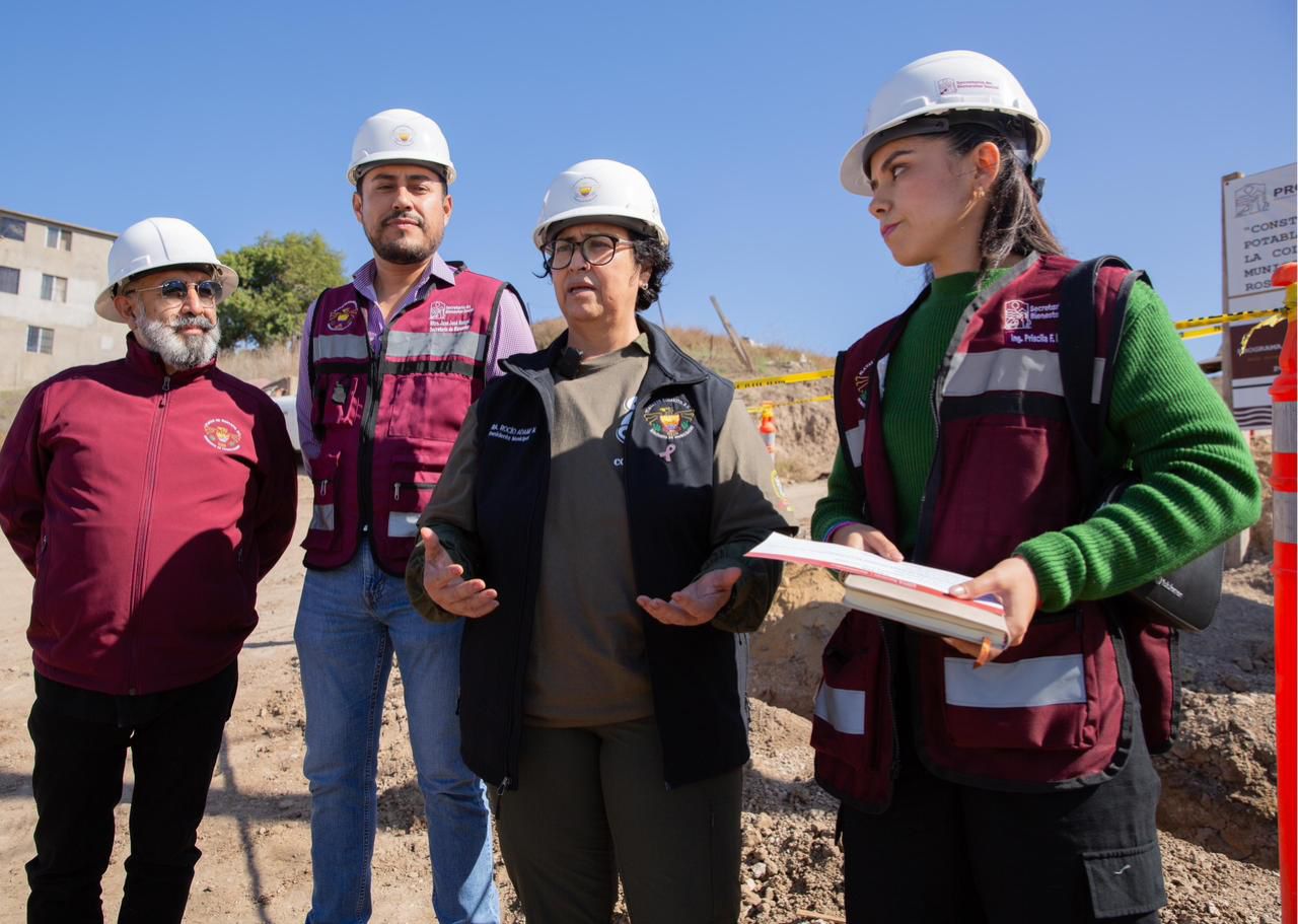 Playas de Rosarito, B.C., a 01 de noviembre de 2025.Como parte del compromiso con el desarrollo urbano y la mejora de la calidad de vida de las familias rosaritenses, la Presidenta Municipal de Playas de Rosarito, Rocío Adame, acudió este día a la colonia Colinas del Sol para supervisar los trabajos de la obra “Construcción de la red de agua potable en la calle Lepus”, proyecto que responde a una necesidad prioritaria de la comunidad y busca reducir el rezago social mediante la introducción de un servicio básico esencial.