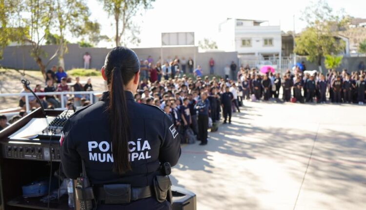Tijuana, Baja California, a 5 de noviembre de 2025. Agentes de la Dirección de Prevención del Delito de la Secretaría de Seguridad y Protección Ciudadana Municipal (SSPCM) llevaron a cabo el programa ´Escuela Informada, Escuela Segura´ en la Secundaria No. 27 ´Flores Magón´, como parte del seguimiento a los acuerdos establecidos en el Comité Municipal de Prevención Contra la Violencia.