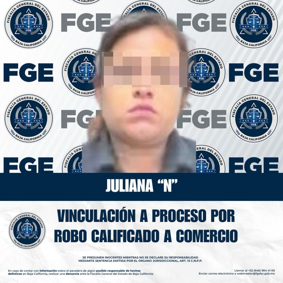 TIJUANA, BAJA CALIFORNIA, A 12 DE NOVIEMBRE DE 2025.- La Fiscalía Regional de Tijuana, a través de la Unidad de Investigación con Detenido, logró que una mujer permanezca en prisión preventiva justificada, luego de que un Juez de Control determinara vincularla a proceso penal por el delito de robo calificado a comercio abierto al público.