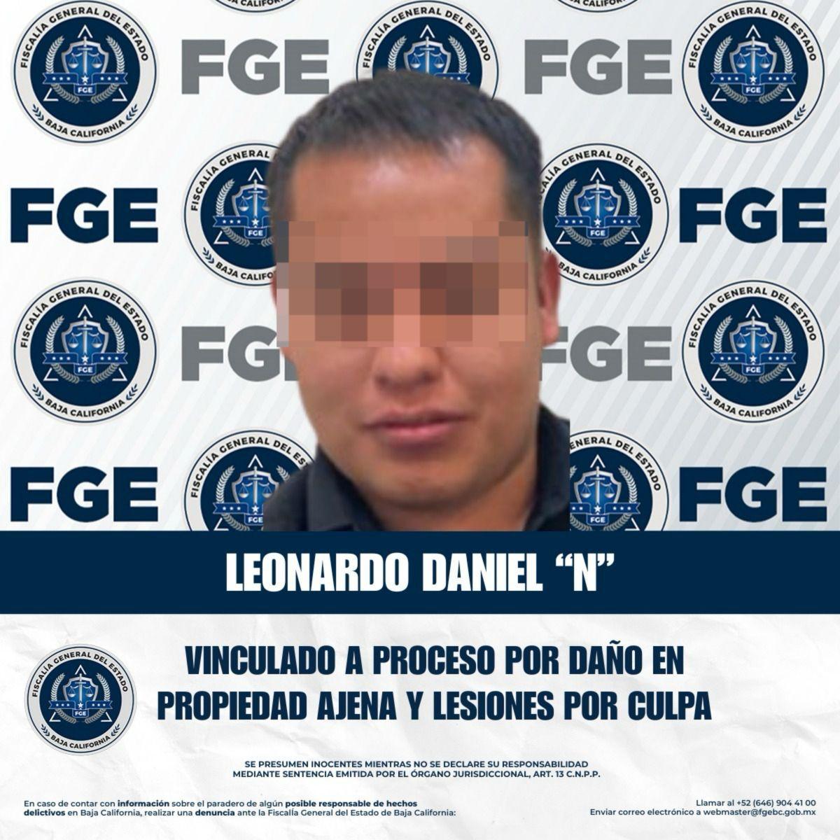 TIJUANA, BAJA CALIFORNIA, A 13 DE NOVIEMBRE DE 2025. – La Fiscalía Regional de Tijuana, a través de la Unidad de Investigación con Detenido, obtuvo vinculación a proceso en contra de Leonardo Daniel “N”, por su presunta responsabilidad en los delitos de daño en propiedad ajena por culpa y lesiones por culpa.