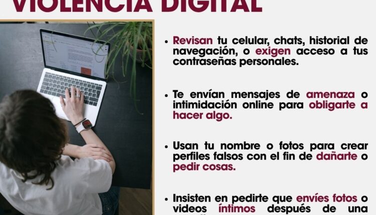 La violencia digital puede manifestarse de distintas formas, por ejemplo: utilizando tu nombre o fotografías para crear perfiles falsos con el fin de dañar tu reputación o pedir cosas en tu nombre o en ocasiones insisten en pedirte fotos o videos íntimos, incluso después de una negativa.