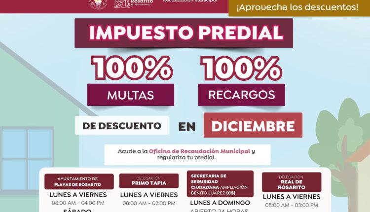 Se invita a todas y todos los rosaritenses a aprovechar este beneficio disponible únicamente durante el mes de diciembre. Con responsabilidad compartida, Rosarito continúa avanzando hacia un municipio más próspero y con mejores oportunidades para todas las familias.