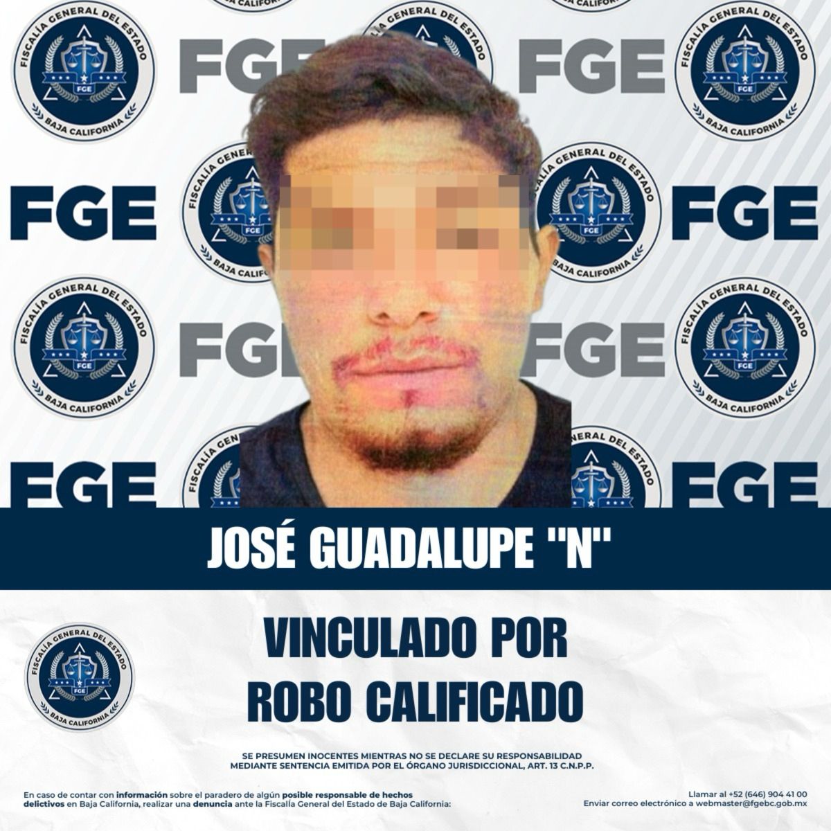 TIJUANA, B.C. – La Fiscalía Regional de Tijuana informó que logró la vinculación a proceso y la imposición de la medida cautelar de prisión preventiva justificada contra José Guadalupe “N”, por su probable responsabilidad en el delito de robo calificado a comercio abierto al público.