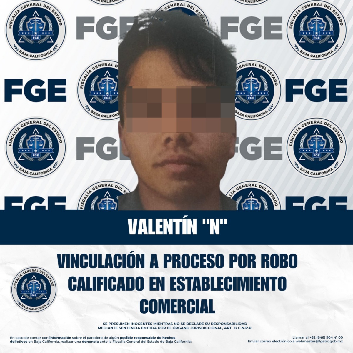 TIJUANA, B.C. – La Fiscalía Regional de Tijuana obtuvo la vinculación a proceso y la medida cautelar de prisión preventiva en contra de Valentín “N”, por su presunta participación en el delito de robo calificado cometido en establecimiento comercial abierto al público.
