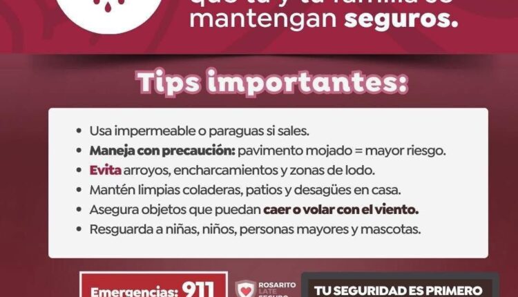 Playas de Rosarito, B.C., 23 de diciembre de 2025. El 10° Ayuntamiento de Playas de Rosarito, encabezado por la Presidenta Municipal, Rocío Adame, hace un llamado a la ciudadanía a extremar precauciones y seguir medidas preventivas para salvaguardar su integridad y la de sus familias, ante las lluvias registradas este lunes 23 de diciembre en el municipio.