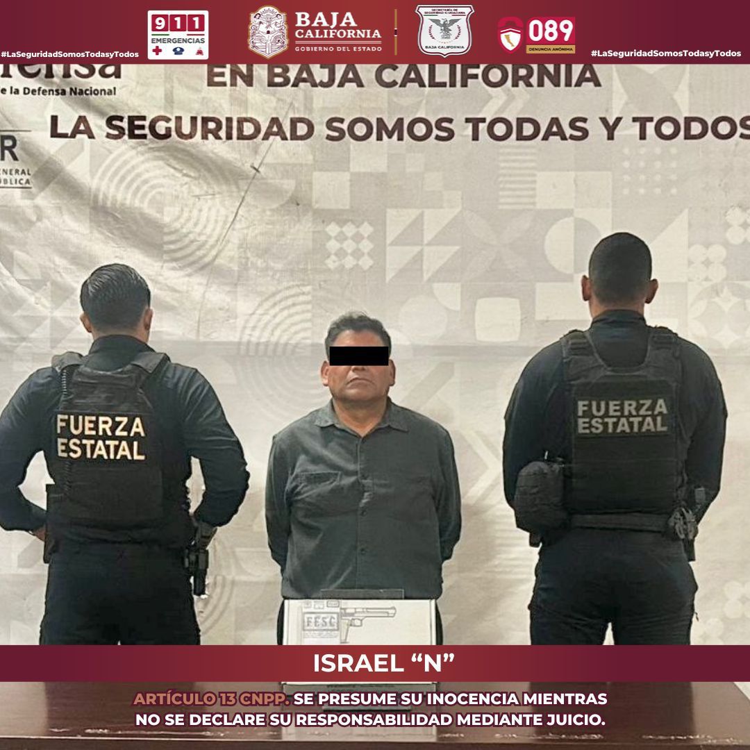 Proceso Legal: Israel “N” fue informado de sus derechos y trasladado para ser puesto a disposición de la Fiscalía General de la República (FGR), institución encargada de determinar su situación jurídica por la violación a la Ley Federal de Armas de Fuego y Explosivos. La Secretaría de Seguridad Ciudadana de Baja California (SSCBC) reitera que la participación de la población a través de las denuncias es clave para retirar armas de las calles.