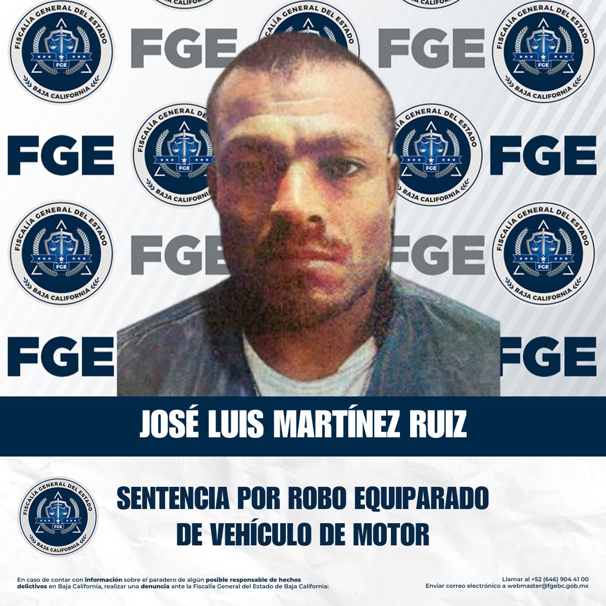 TIJUANA, B.C. – Como resultado de las investigaciones presentadas por la Fiscalía Regional de Tijuana, se obtuvo una sentencia condenatoria de tres años de prisión contra José Luis Martínez Ruiz, responsable del delito de robo equiparado de vehículo de motor en la modalidad de posesión.