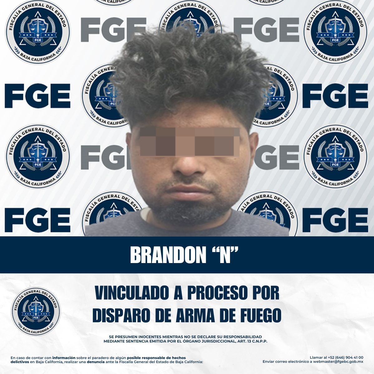 TIJUANA, B.C. – La Fiscalía Regional de Tijuana obtuvo la vinculación a proceso y la medida cautelar de prisión preventiva en contra de Brandon “N”, presunto responsable de atacar con un arma de fuego a un agente policiaco durante una intervención.