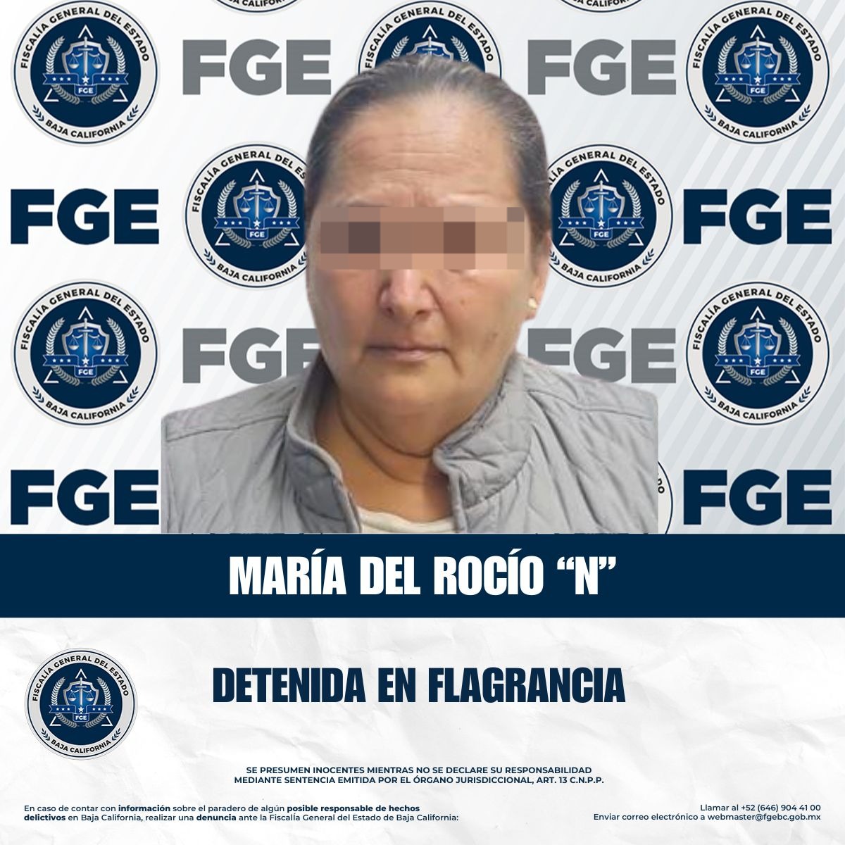Tijuana, Baja California, a 7 de enero de 2026.- Elementos de la Agencia Estatal de Investigación detuvieron a María del Rocío “N”, relacionada con el delito de robo de vehículo en la ciudad de Tijuana.