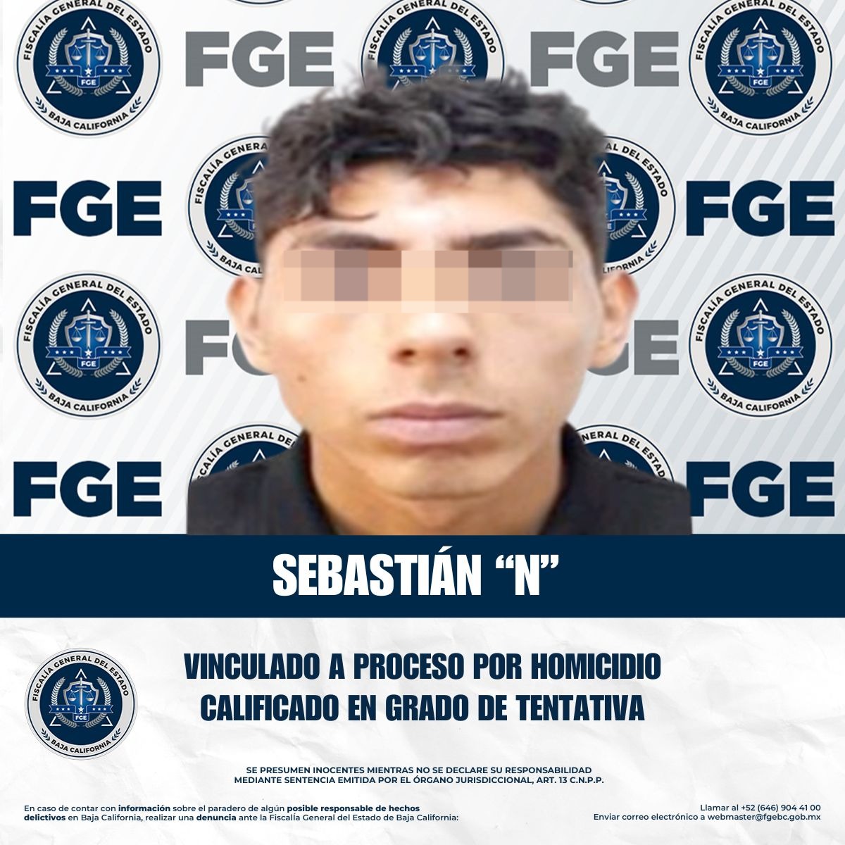 Tijuana, Baja California, a 8 de enero de 2026.- La Fiscalía Especializada en Delitos Contra la Vida, adscrita a la Fiscalía General del Estado, obtuvo la vinculación a proceso de Sebastián “N”, por su presunta responsabilidad en el delito de homicidio calificado en su grado de ejecución de tentativa.