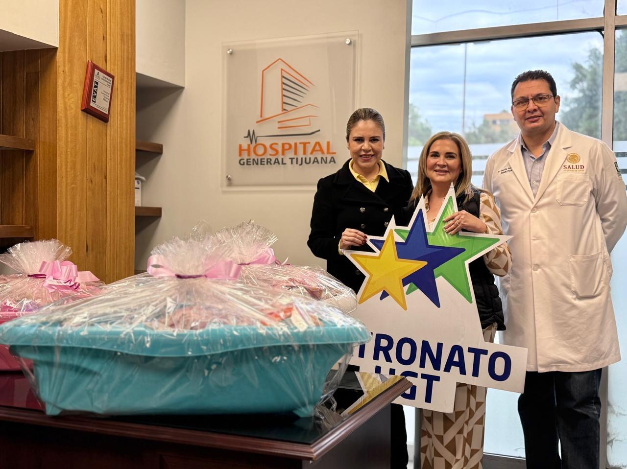 Tijuana, Baja California, a 9 de enero de 2026. A nombre del presidente municipal, Ismael Burgueño Ruiz, la directora del Sistema para el Desarrollo Integral de la Familia (DIF), Paola Leyva Izaguirre, hizo la entrega de canastas con enseres esenciales para recién nacidos en el Hospital General de Tijuana.