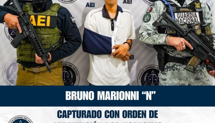 TIJUANA, BAJA CALIFORNIA, A 15 DE ENERO DE 2026.- Elementos de la Agencia Estatal de Investigación, adscritos a la Unidad Especializada en Delitos Contra la Vida de la Fiscalía General del Estado de Baja California, cumplimentaron una orden de aprehensión en contra de Bruno Marionni “N”, alias “El Bruno”, por su presunta responsabilidad en el delito de homicidio calificado con ventaja.