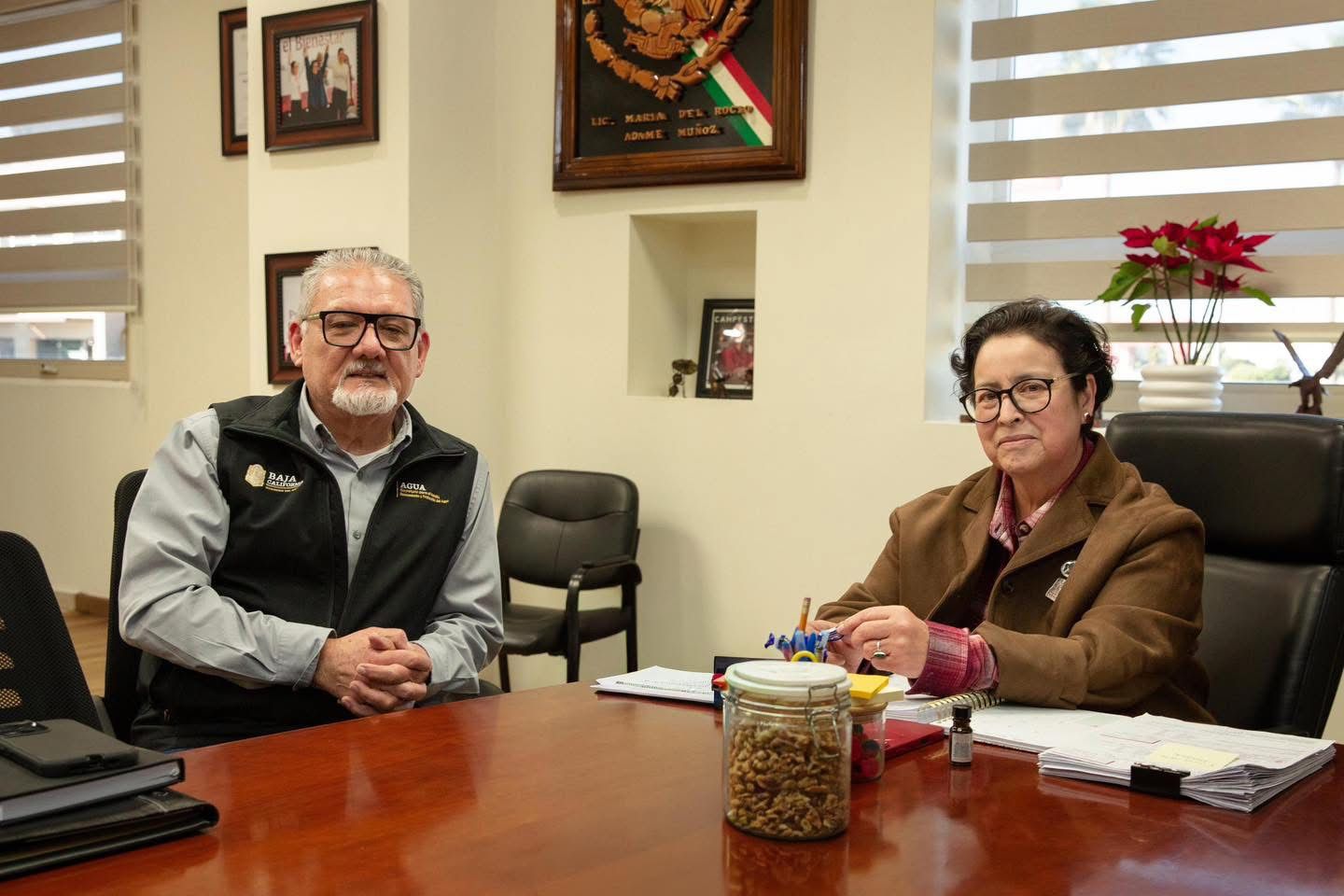 En este contexto, la presidenta municipal, Rocío Adame, sostuvo una reunión de trabajo con Víctor Daniel Amador Barragán, secretario para el Manejo, Saneamiento y Protección del Agua, en la que se dio seguimiento a temas clave relacionados con la protección del recurso hídrico en Playas de Rosarito.