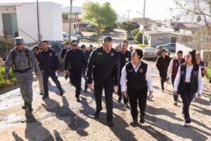 La alcaldesa Rocío Adame reafirmó la importancia de la coordinación entre corporaciones durante la Jornada de Seguridad realizada este martes en Primo Tapia. El operativo integró a la Agencia Estatal de Investigación, la Guardia Nacional y la Dirección de Seguridad en Carreteras, con el fin de ofrecer una cobertura total en materia de prevención y reacción ante el delito en este sector de Playas de Rosarito.