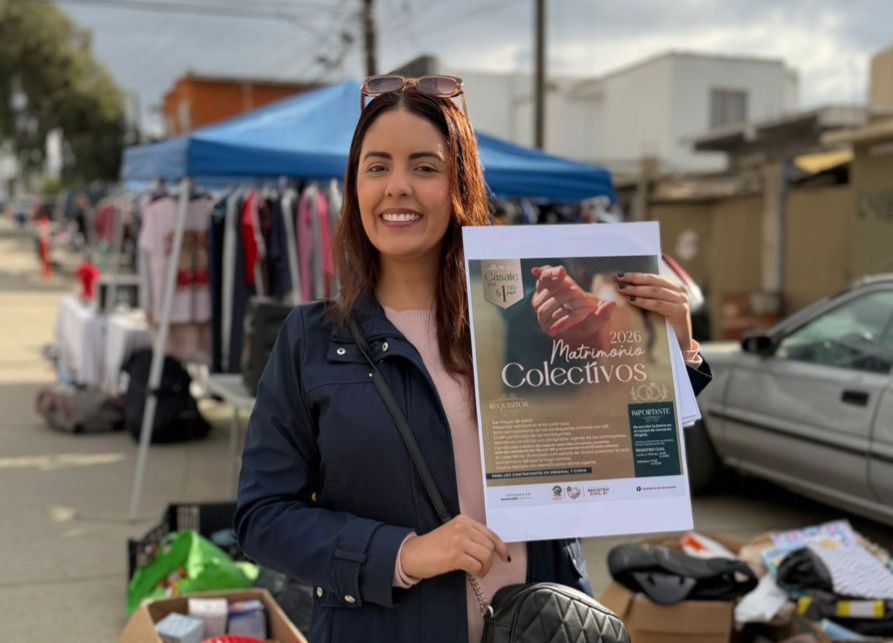 Con el objetivo de promover la corresponsabilidad y brindar certeza jurídica a las parejas, personal de la Oficialía 01 del Registro Civil acudió al tianguis de la colonia 89 para difundir la campaña de Matrimonios Colectivos 2026, informó la presidenta municipal de Ensenada, Claudia Agatón Muñiz.