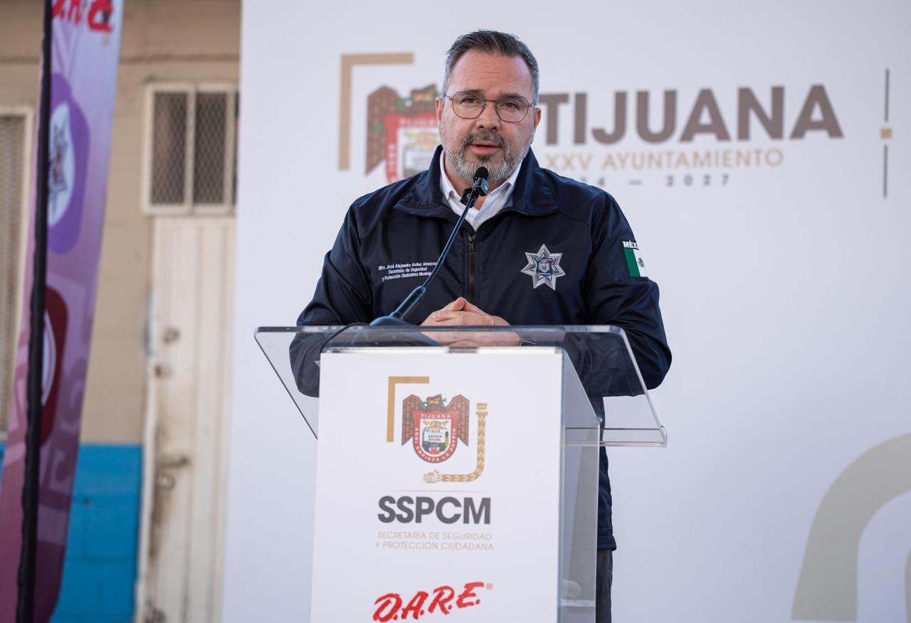 *Tijuana, Baja California, a 4 de febrero de 2026.* El presidente municipal de Tijuana, Ismael Burgueño Ruiz, encabezó la ceremonia de clausura del programa D.A.R.E., correspondiente al periodo septiembre–diciembre 2025, realizada en la Escuela Primaria Don Andrés Quintana Roo, mediante el cual se beneficiaron 6 mil 70 alumnas y alumnos de nivel primaria y secundaria de la ciudad.