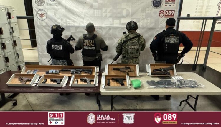 Tijuana, Baja California, 11 de febrero de 2026.- La Secretaría de Seguridad Ciudadana de Baja California informó sobre el decomiso de un cargamento de droga y un arsenal compuesto por armas largas y cortas en la colonia Jardín Dorado. El aseguramiento fue realizado por elementos de las Fuerzas Especiales de Seguridad (FESC) tras la localización de un vehículo con placas de Sonora que presentaba irregularidades en su estacionamiento.